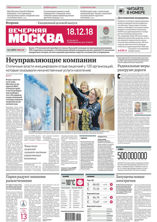 Вечером на страницах «Вечерки» появляются эксклюзивные интервью ньюсмейкеров культуры и шоу-бизнеса, репортажи журналистов по вечерней Москве, афиша нашего города. Один раз в неделю выходит специальный студенческий вечерний номер.