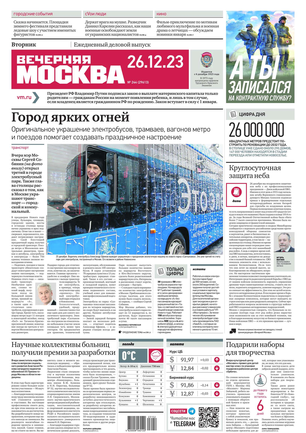 «Вечерняя Москва» — ежедневная российская вечерняя газета, старейшее из вечерних изданий в России, учрежденное в 1923 году. Выходит пять дней в неделю, кроме субботы и воскресенья. Отличается тем, что рассказывает о событиях еще не завершившегося дня. Оперативно освещает хронику и особенности жизни Москвы, охватывает все слои общества и большинство профессиональных и возрастных групп читателей.Издание представлено тремя выпусками – утренним ежедневным, вечерним (выходит три раза в неделю), еженедельным (выходит по четвергам).