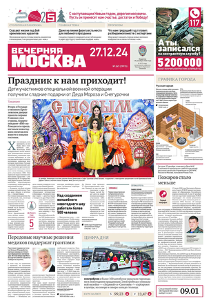 «Вечерняя Москва» — ежедневная российская вечерняя газета, старейшее из вечерних изданий в России, учрежденное в 1923 году. Выходит пять дней в неделю, кроме субботы и воскресенья. Отличается тем, что рассказывает о событиях еще не завершившегося дня. Оперативно освещает хронику и особенности жизни Москвы, охватывает все слои общества и большинство профессиональных и возрастных групп читателей.Издание представлено тремя выпусками – утренним ежедневным, вечерним (выходит три раза в неделю), еженедельным (выходит по четвергам).