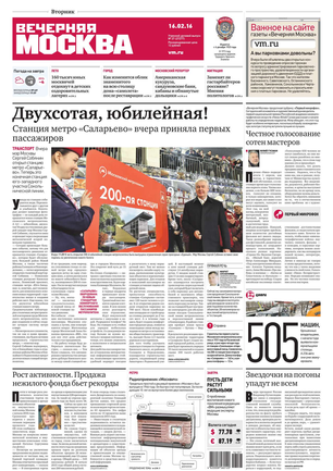 «Вечерняя Москва» — ежедневная российская вечерняя газета, старейшее из вечерних изданий в России, учрежденное в 1923 году. Выходит пять дней в неделю, кроме субботы и воскресенья. Отличается тем, что рассказывает о событиях еще не завершившегося дня. Оперативно освещает хронику и особенности жизни Москвы, охватывает все слои общества и большинство профессиональных и возрастных групп читателей.Издание представлено тремя выпусками – утренним ежедневным, вечерним (выходит три раза в неделю), еженедельным (выходит по четвергам).