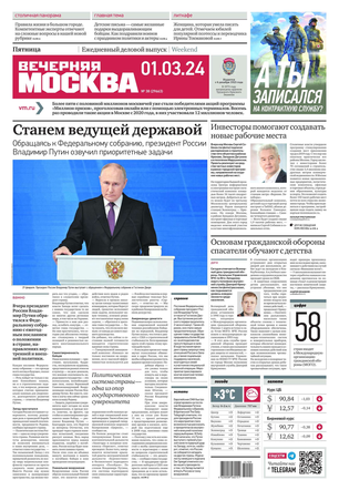 Вечером на страницах «Вечерки» появляются эксклюзивные интервью ньюсмейкеров культуры и шоу-бизнеса, репортажи журналистов по вечерней Москве, афиша нашего города. Один раз в неделю выходит специальный студенческий вечерний номер.
