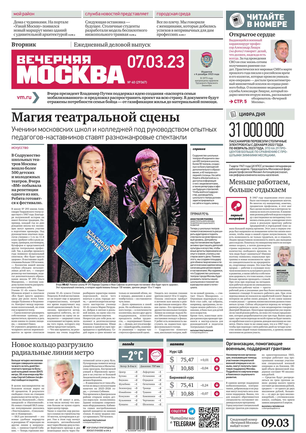 Вечером на страницах «Вечерки» появляются эксклюзивные интервью ньюсмейкеров культуры и шоу-бизнеса, репортажи журналистов по вечерней Москве, афиша нашего города. Один раз в неделю выходит специальный студенческий вечерний номер.