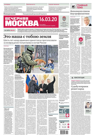 «Вечерняя Москва» — ежедневная российская вечерняя газета, старейшее из вечерних изданий в России, учрежденное в 1923 году. Выходит пять дней в неделю, кроме субботы и воскресенья. Отличается тем, что рассказывает о событиях еще не завершившегося дня. Оперативно освещает хронику и особенности жизни Москвы, охватывает все слои общества и большинство профессиональных и возрастных групп читателей.Издание представлено тремя выпусками – утренним ежедневным, вечерним (выходит три раза в неделю), еженедельным (выходит по четвергам).