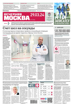 Вечером на страницах «Вечерки» появляются эксклюзивные интервью ньюсмейкеров культуры и шоу-бизнеса, репортажи журналистов по вечерней Москве, афиша нашего города. Один раз в неделю выходит специальный студенческий вечерний номер.