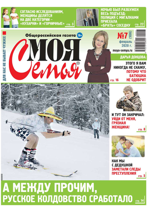 Общероссийская газета «Моя Семья» существует с 2000 года и входит в число самых популярных изданий России. Газета является не просто средством информации; для многих людей стало жизненной потребностью прочитать её раз в неделю – это сродни желанию увидеться с родственниками, поговорить с друзьями. Подавляющее большинство читателей не пропускает ни одного номера. «Моя Семья» задумана как газета о человеческих отношениях. Редакция делает упор на историях из жизни, и многие публикации представляют собой короткие рассказы. Главной основой газетных заметок являются письма читателей, что делает «Мою Семью» уникальной – все истории здесь подлинные.