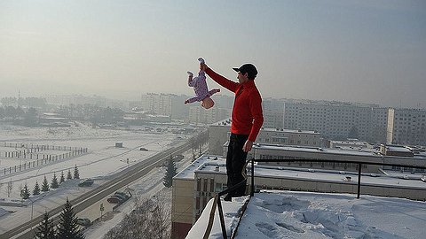 История из Зеленогорска (Красноярский край) сейчас бурно обсуждается в социальных сетях. Молодой папа выложил на своей страничке видео: он катает новорожденного ребенка, выставив за окно скоростной BMW. И еще фото, на котором держит дочку вниз головой на вытянутой руке, стоя на краю крыши девятиэтажки. На поверку выяснилось: он не маргинал, не наркоман, не алкоголик и не сумасшедший. Наоборот, человек хорошо обеспеченный (работает в топливной компании) и известный в городе экстремал: фанат спорта и рискованных трюков. Сам способен подтягиваться на руках, зависнув на крыше многоэтажки; прыгнуть в воду вниз головой со скалы; пройти по веревке на большой высоте...