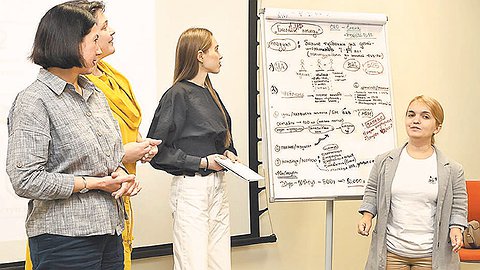 Мы запаслись достаточным количеством времени: два месяца на всё. Даже делегировали сотрудников в школу малого бизнеса столичного Департамента предпринимательства. Она для всех москвичей оказалась совершенно бесплатной. Уроки — бизнес-планирование, продвижение своего дела в соцсетях, юридическая база, бухучёт. Дарья прошла учёбу онлайн, а Лена неделю посещала самые настоящие занятия: с разбором проектов и домашкой! У всех есть дети: так что мы-то точно знаем, какая она — идеальная футболка.
